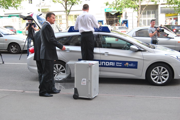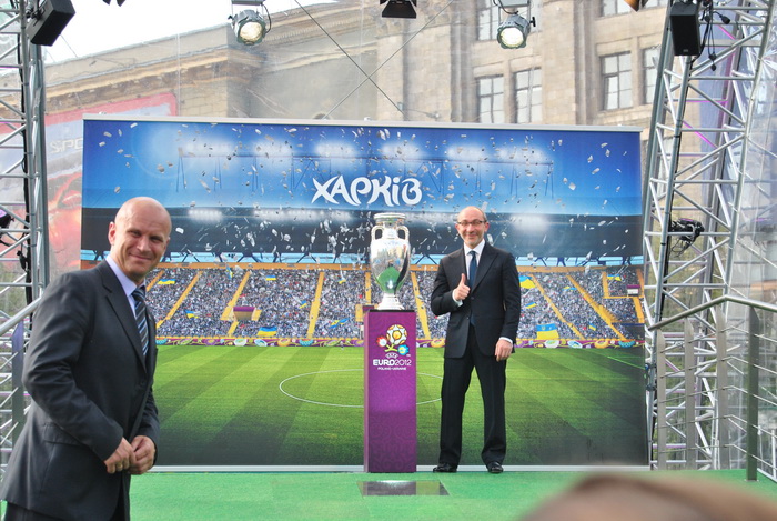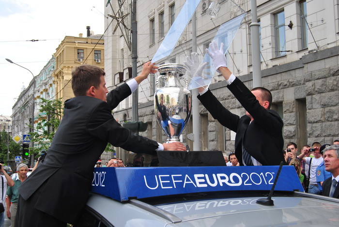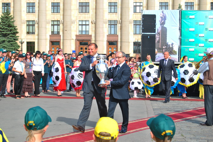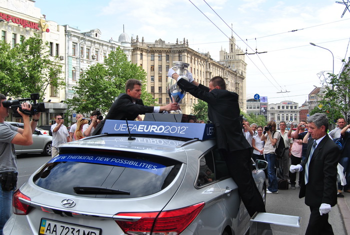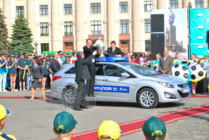 После пресс-конференции, Кубок Анри Делоне проехался по Сумской и прибыл на площадь Свободы, где в течении двух дней, 16 и 17 мая с 10:00 до 20:00 с трофеем смогут сфотографироваться все болельщики.